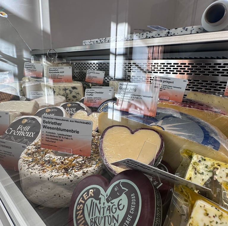 Genieße frischen Käse, Wurst und Brot aus biologischem Anbau in unserem Biomarkt.